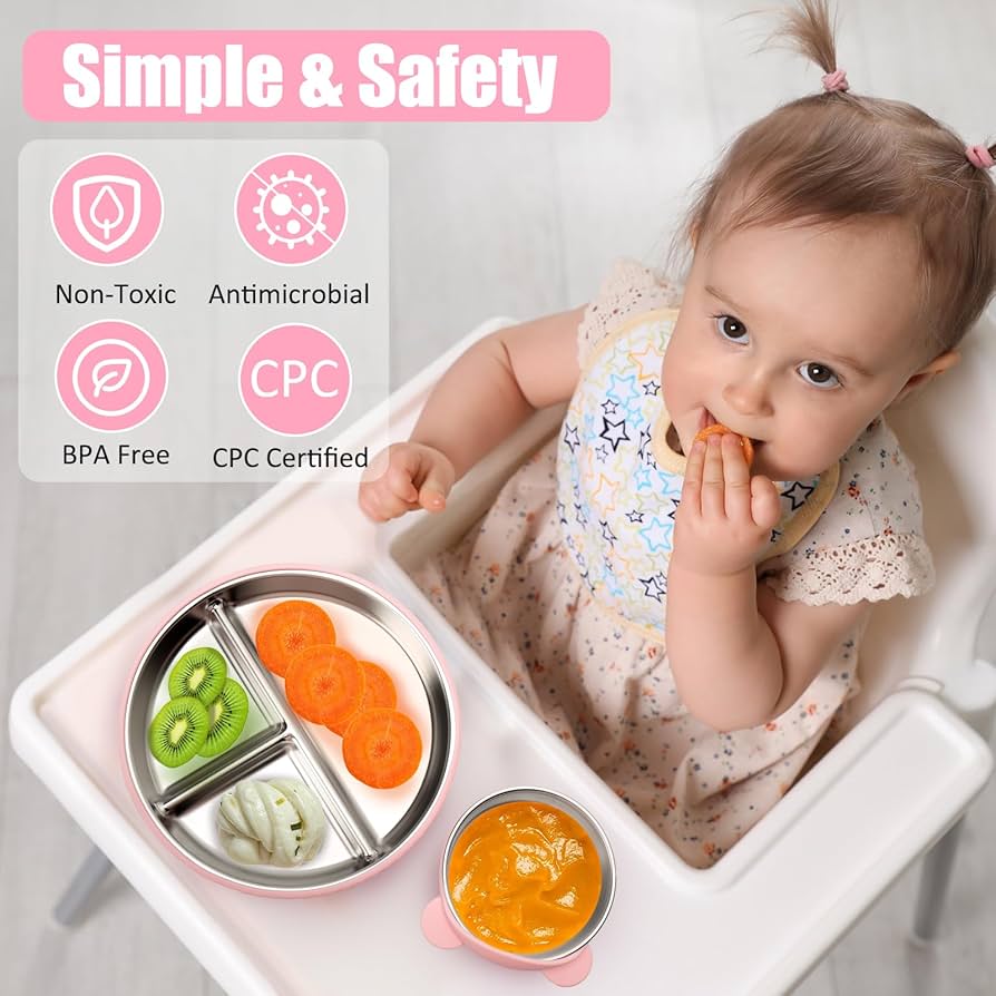 - Mess-Free – Strong suction bases prevent spills, while silicone bib catches crumbs