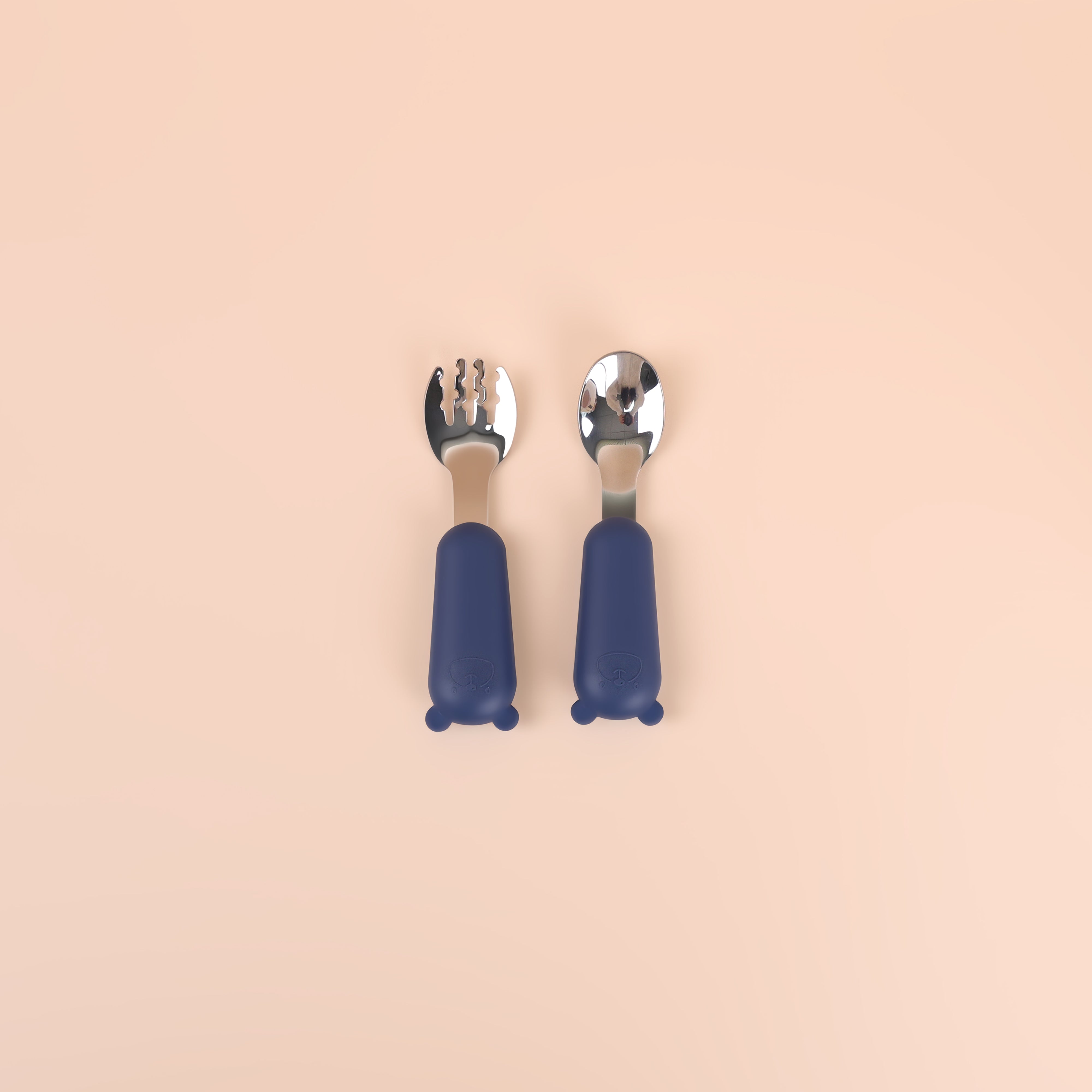 Crafted with high-quality stainless steel heads, this cutlery set is durable, hygienic, and gentle on growing mouths. The soft food-grade silicone handles, shaped with an adorable bear design, provide a comfortable, non-slip grip while helping little ones develop confidence and independence at the table.