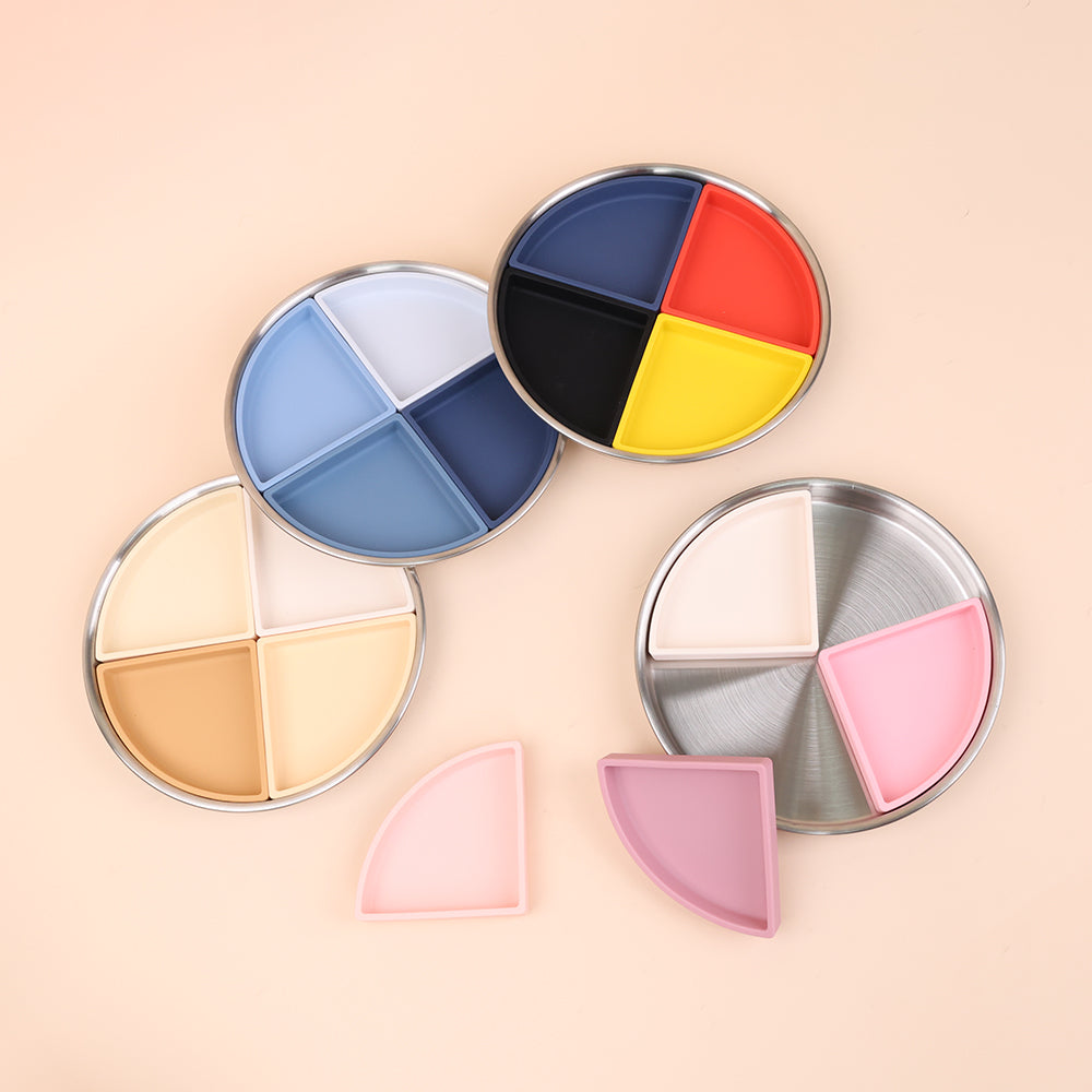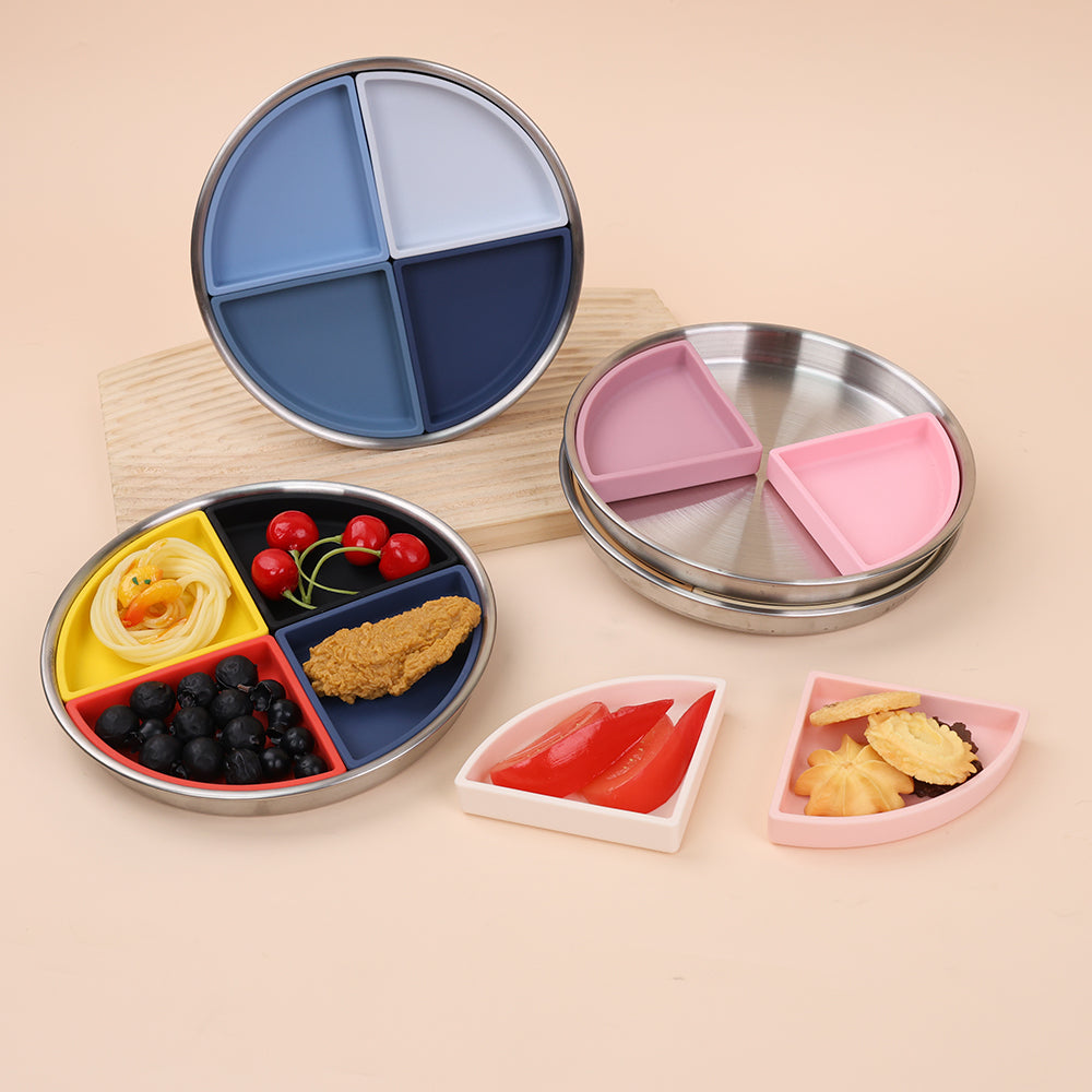 Crafted from high-quality 18/8 stainless steel, this plate can be used with or without the silicone dividers, giving you full flexibility — serve separated foods for picky eaters or remove the divider for larger portions as appetites grow. The soft, food-grade silicone divider fits securely inside the plate, creating four perfectly portioned sections without compromising safety or comfort.